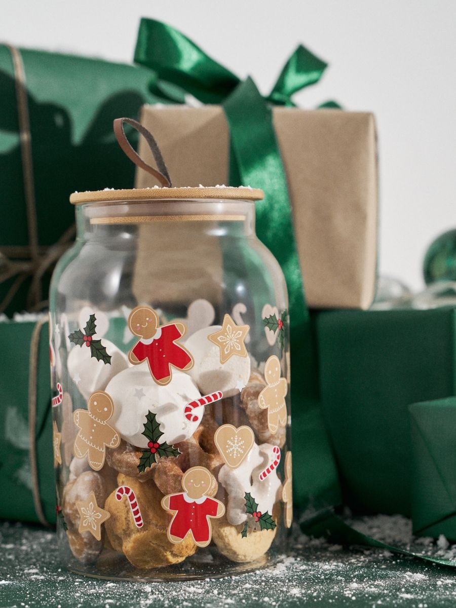 Kozarec s pokrovom z božičnim vzorcem