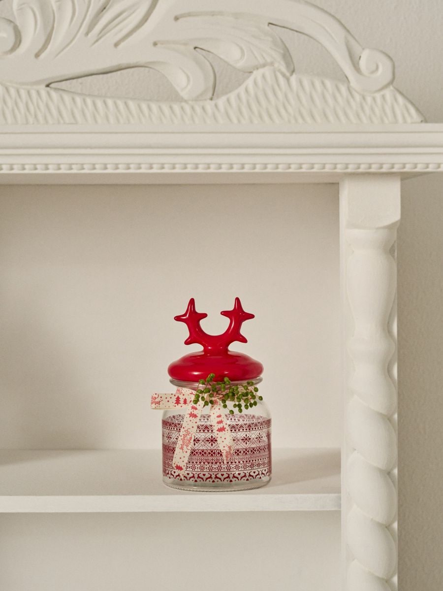 Kozarec za shranjevanje s pokrovom in motivom jelena