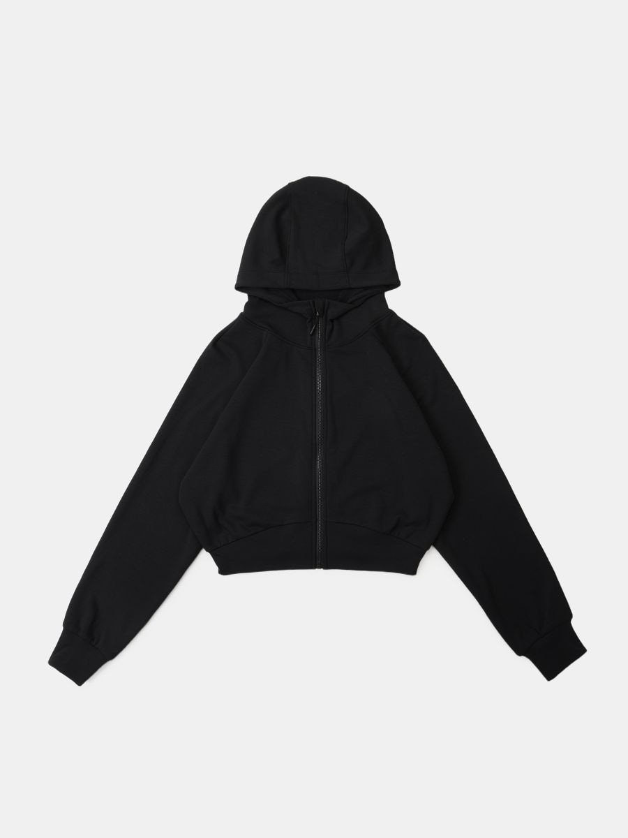 Kratek športni pulover s kapuco in zadrgo