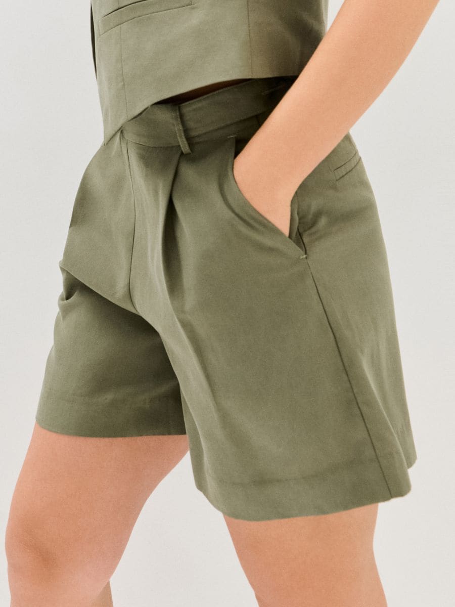 Kratke hlače iz lyocella s pregibi in mešanico lanu