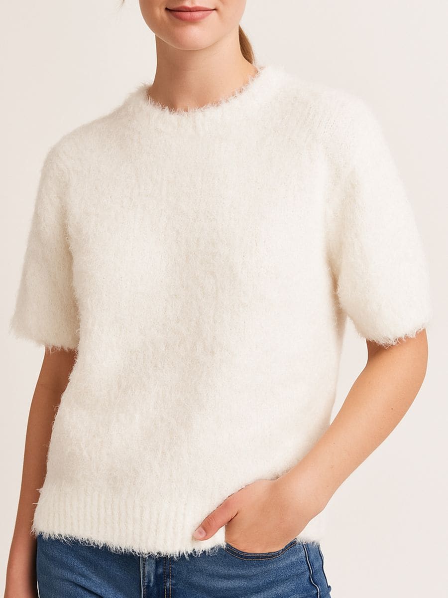 Mehka bluza s kratkimi rokavi in okroglim izrezom