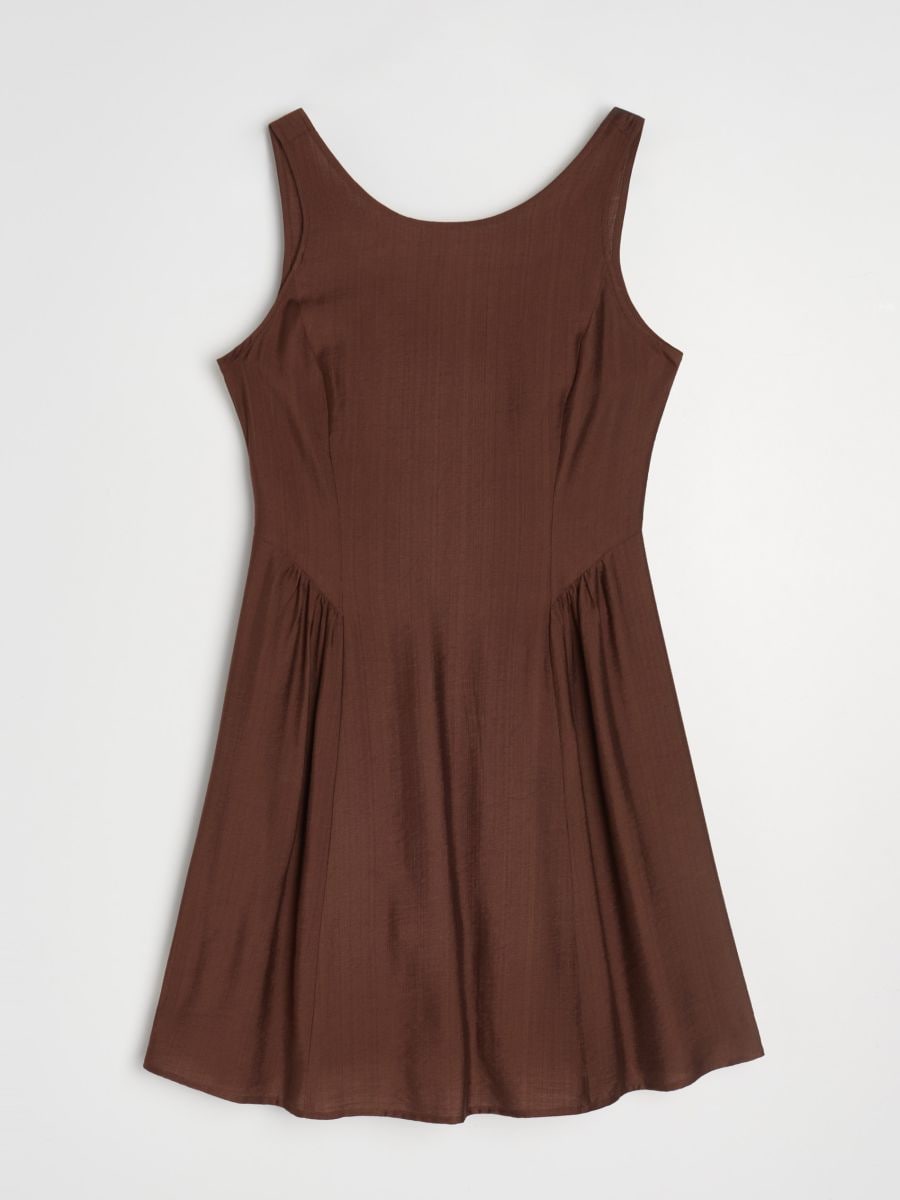 Mini obleka brez rokavov z naborki z viskozo