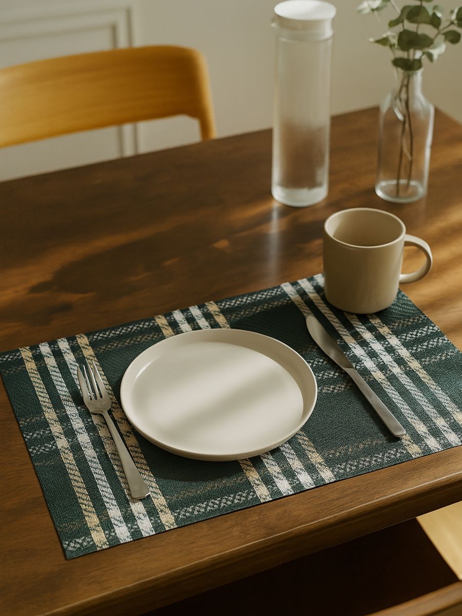Namizni pogrinjki s karo vzorcem, komplet 4 kosa