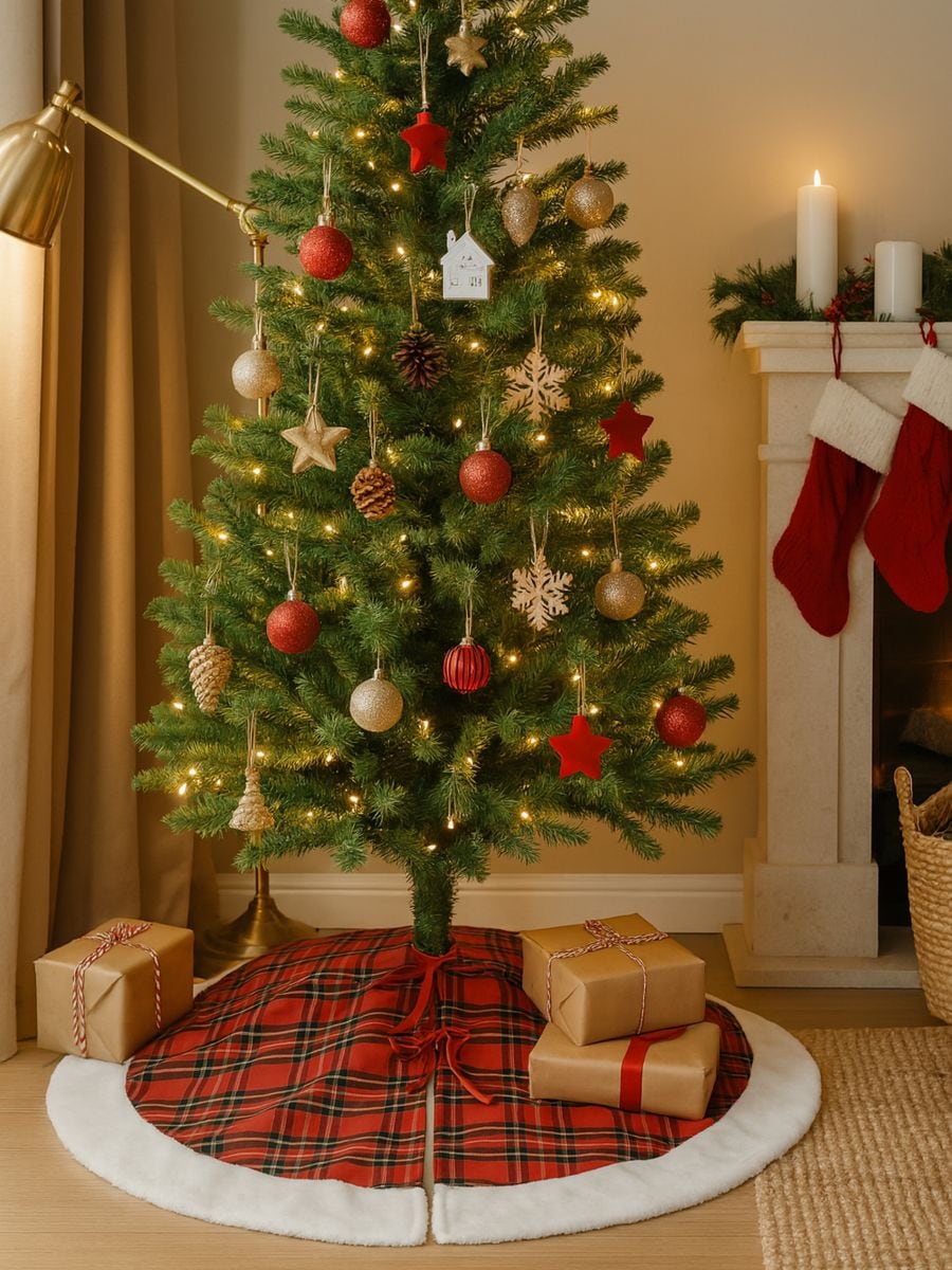 Okrogla prevleka za stojalo božičnega drevesa s karo vzorcem