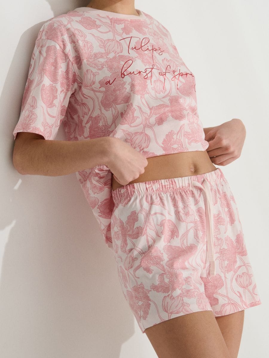 Pigiama due pezzi in cotone con stampa floreale