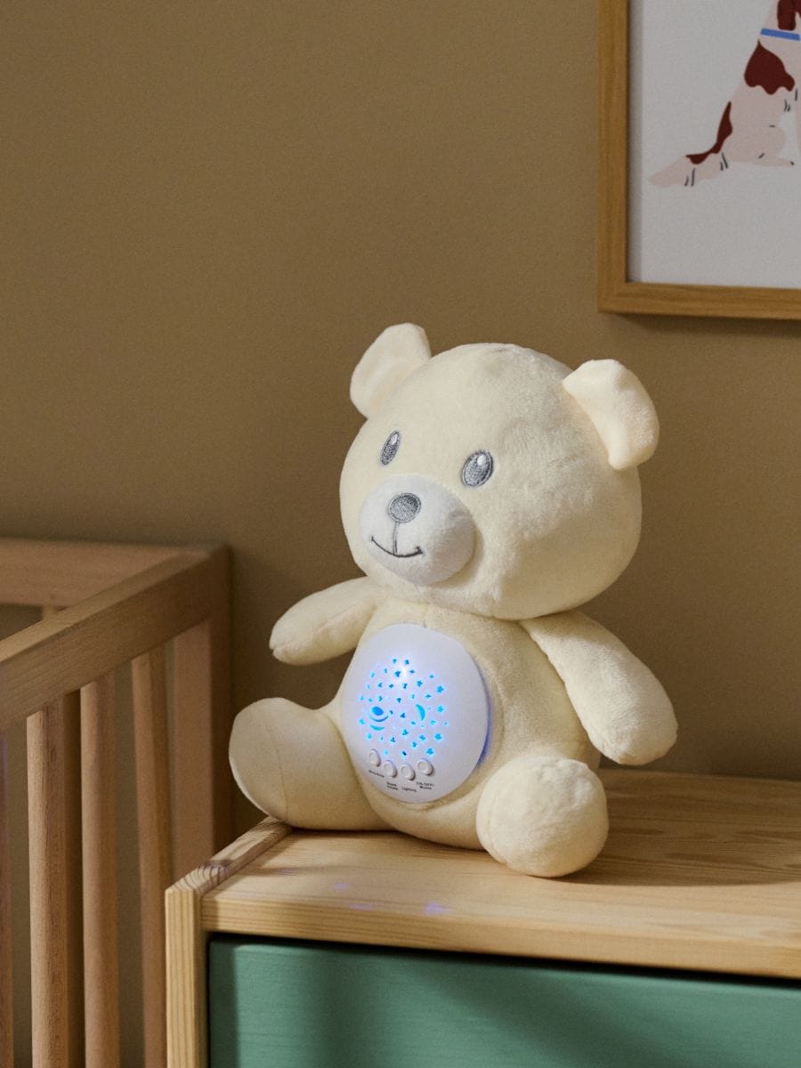 Projektor v obliki medvedka, ki oddaja zvoke