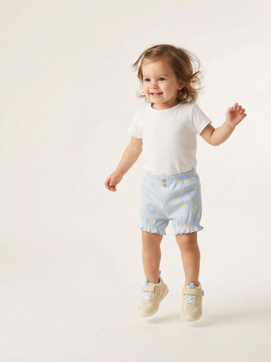 Prugasti šortki z rožastim vzorom
