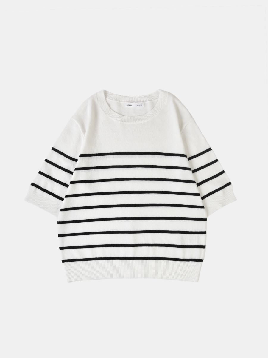 Pulover s kratkimi rokavi v črtah