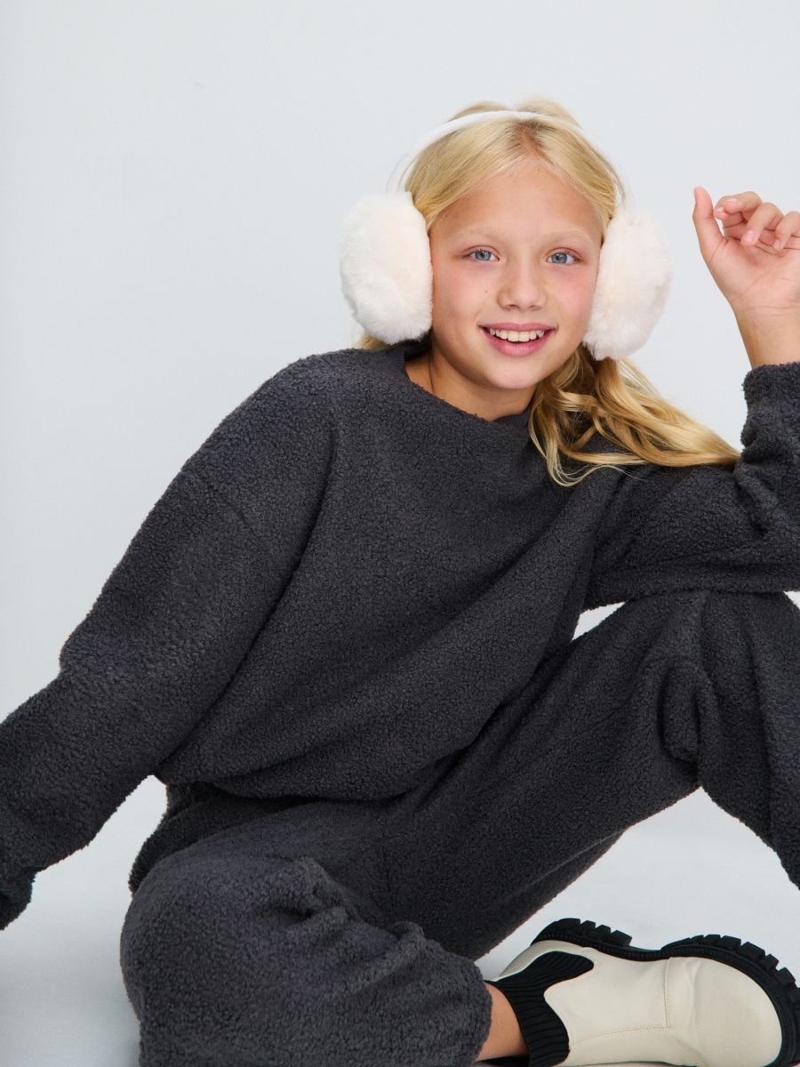 Pulover z okroglim izrezom iz materiala, ki posnema ovčjo volno
