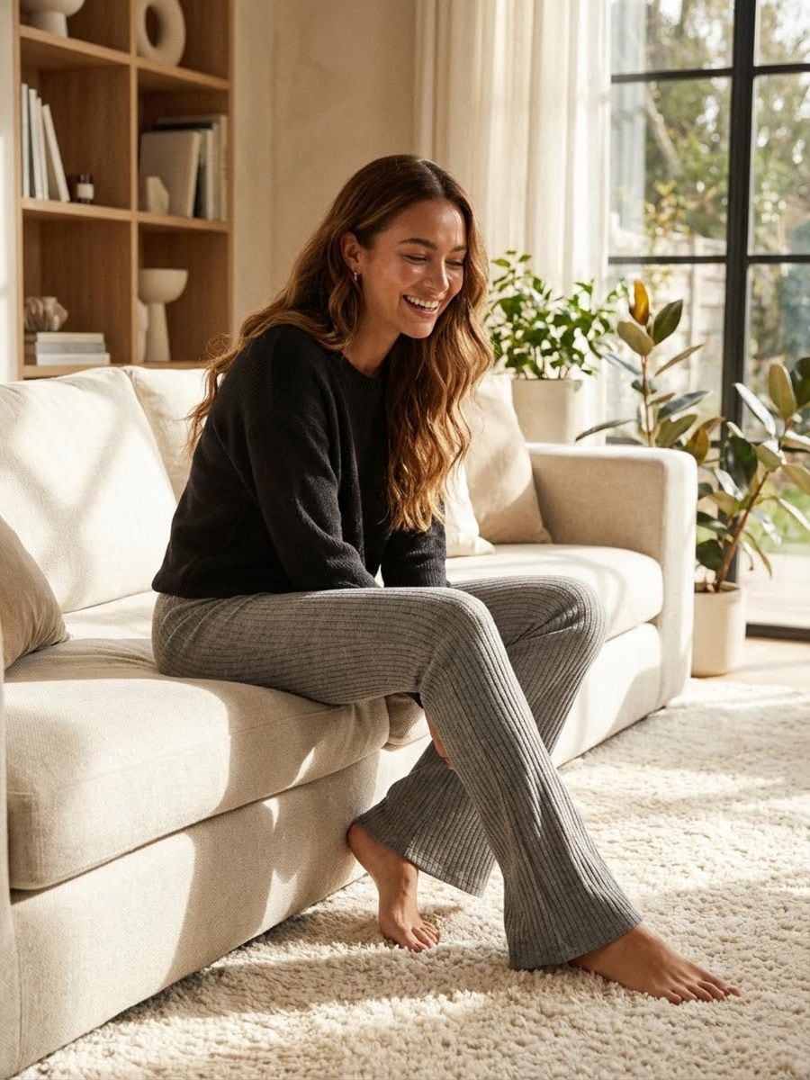 Rebraste hlače s širokimi hlačnicami