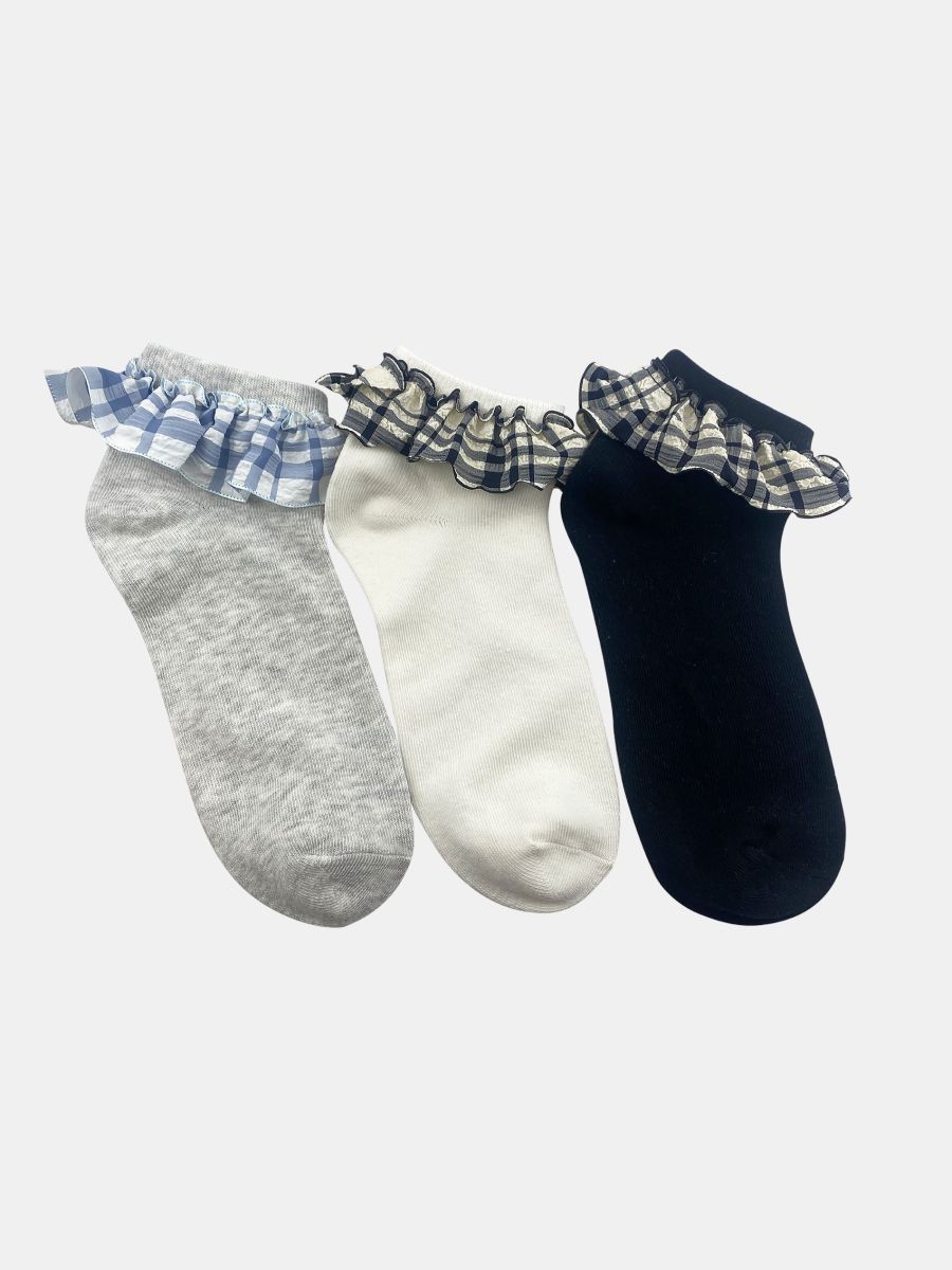 Rebraste nogavice z okrasnimi volančki 3 pakiranje