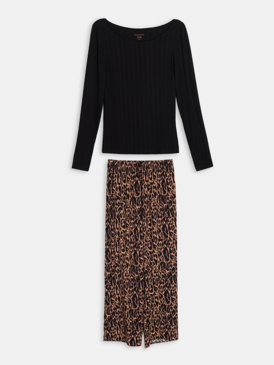Satenska pižama z leopardjim vzorcem in rebrastim zgornjim delom