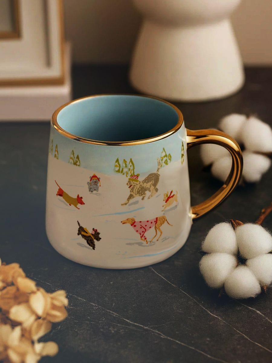 Skodelica z zimskim motivom psov