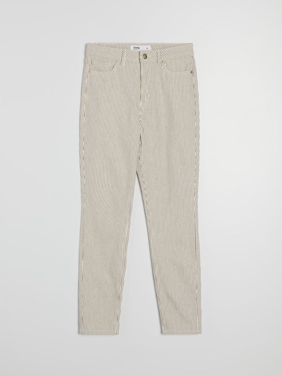 Slim kavbojke s srednjim pasom in črtami