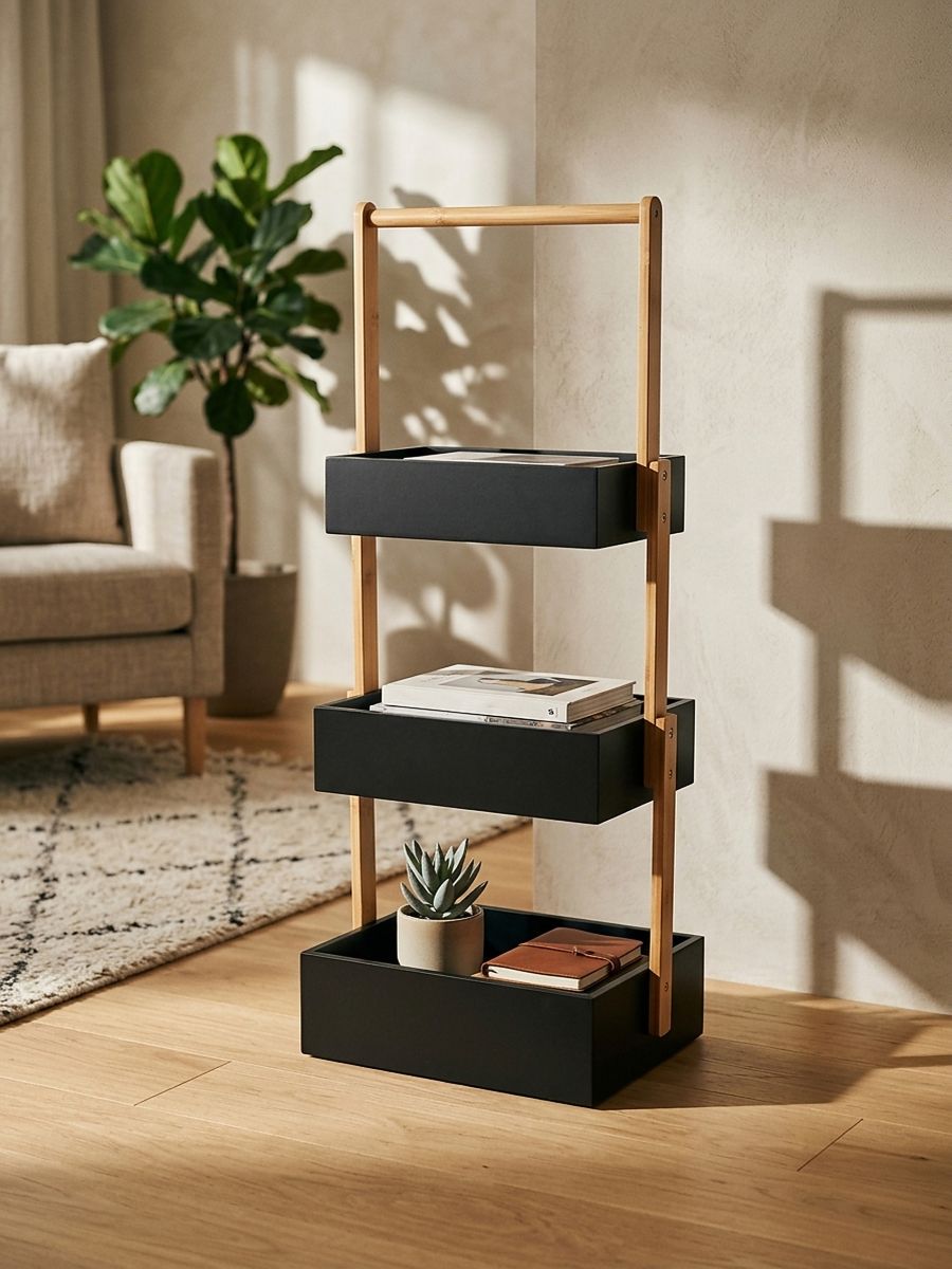Trinivojska stoječa polica z bambusovim okvirjem