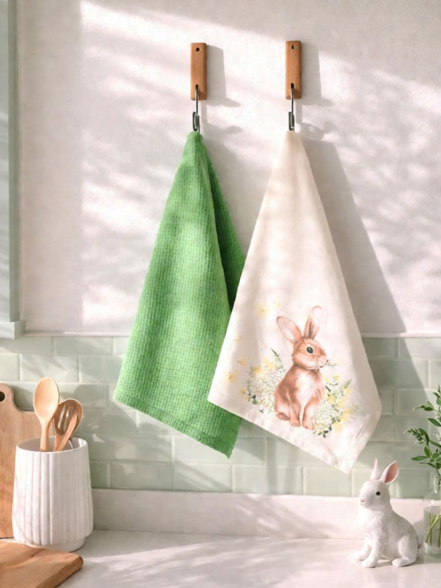Velikonočne kuhinjske krpe z motivom zajca, 2 kosa