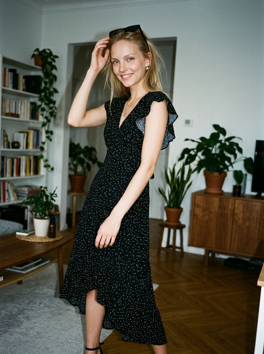 Viskozna prekrivna midi obleka s pikami