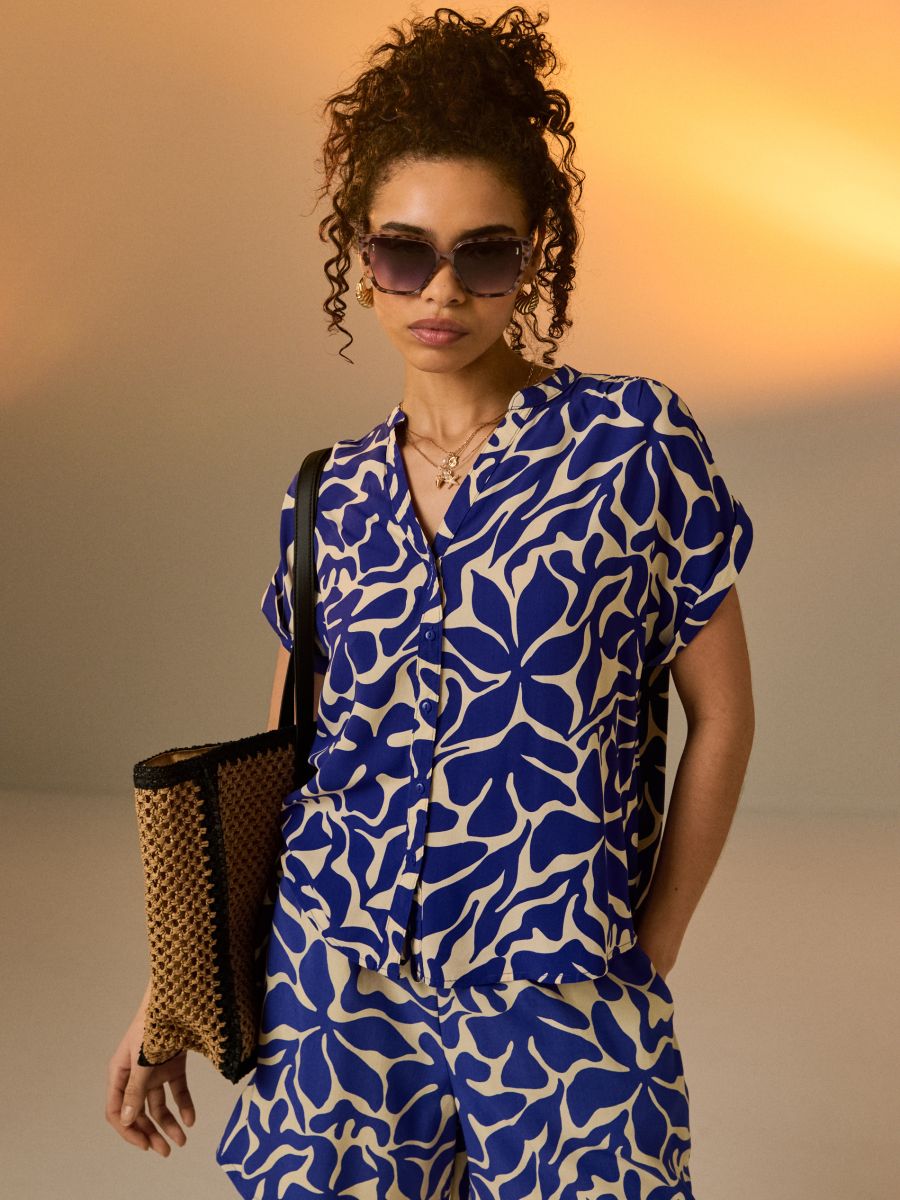 Viskozna srajca s kratkimi rokavi in geometričnim vzorcem