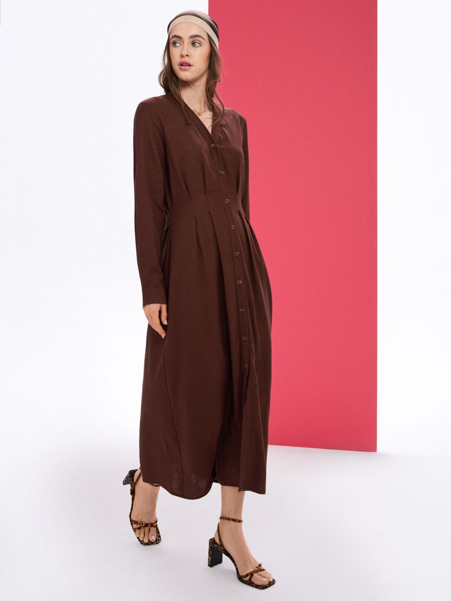 Viskozna srajčna midi obleka z dodatkom lanu