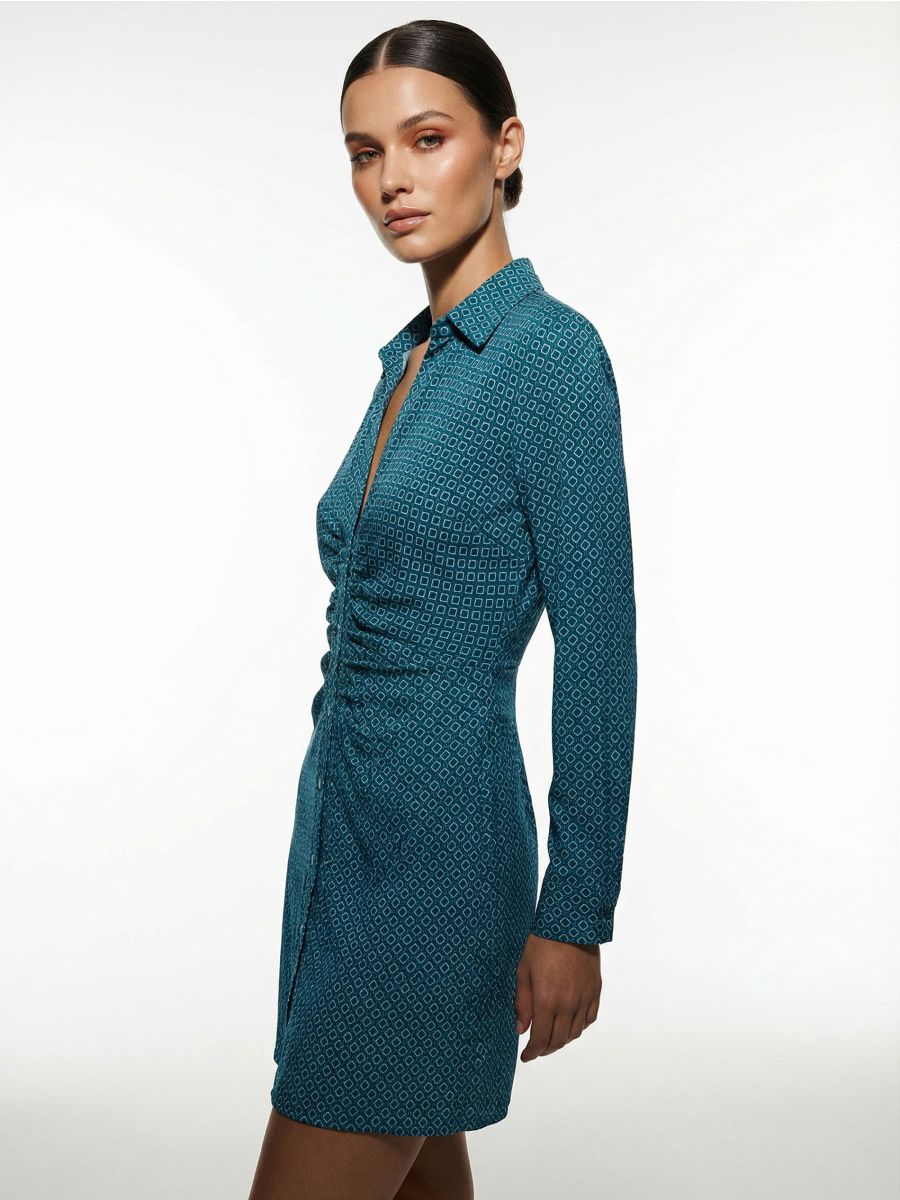 Viskozna srajčna mini obleka z naborki