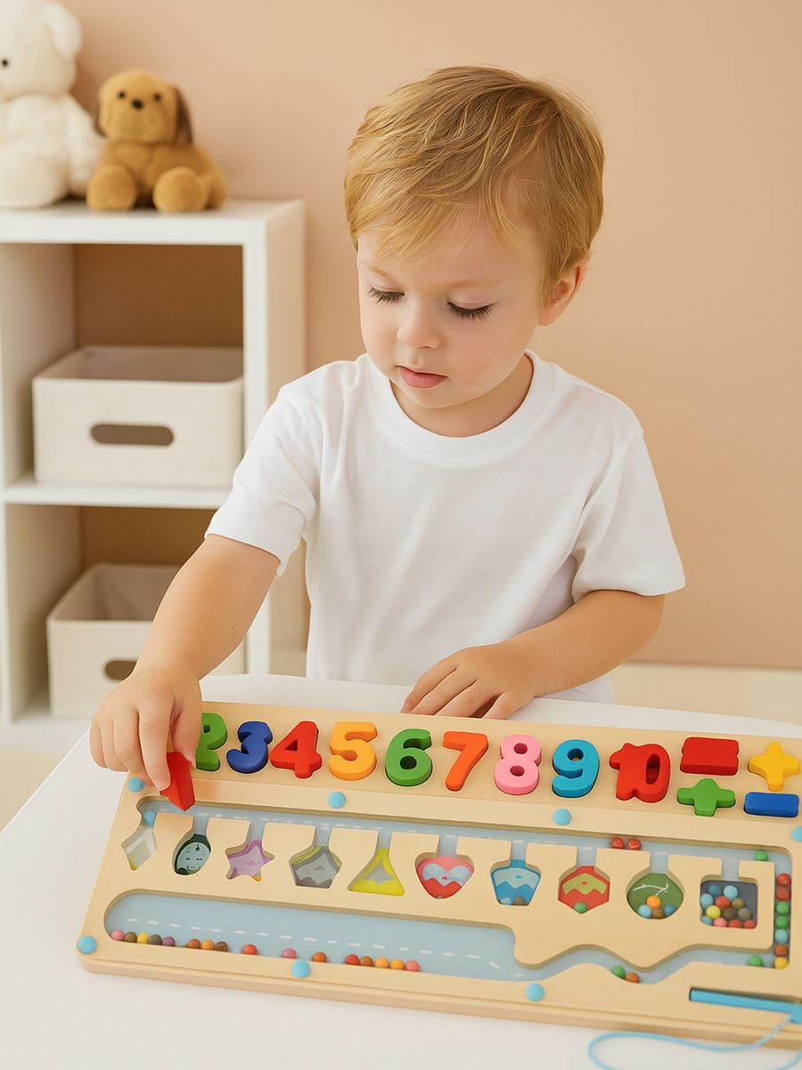 Drevená vzdelávacia skladačka – učenie čísel a farieb s magnetickým labyrintom