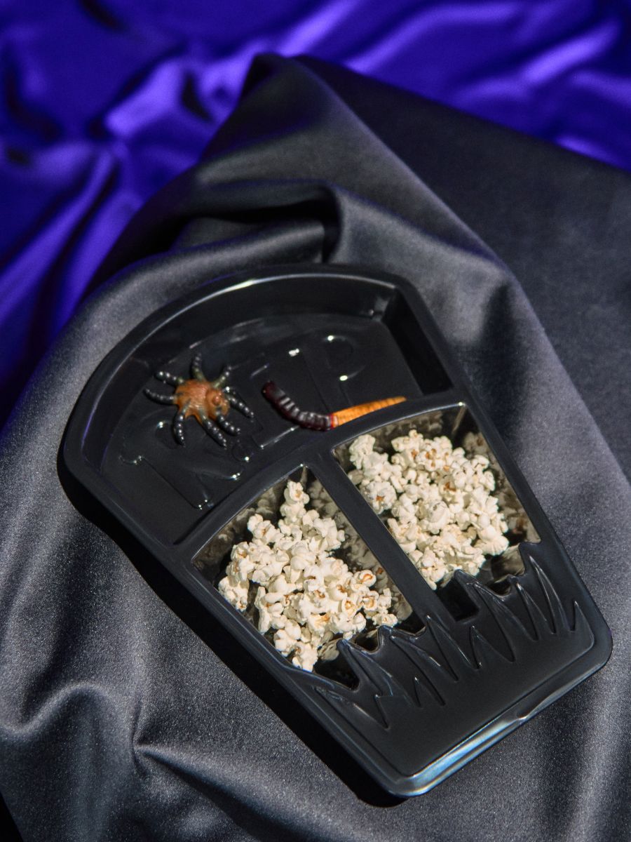 Halloween serving tray in the shape of a tombstone