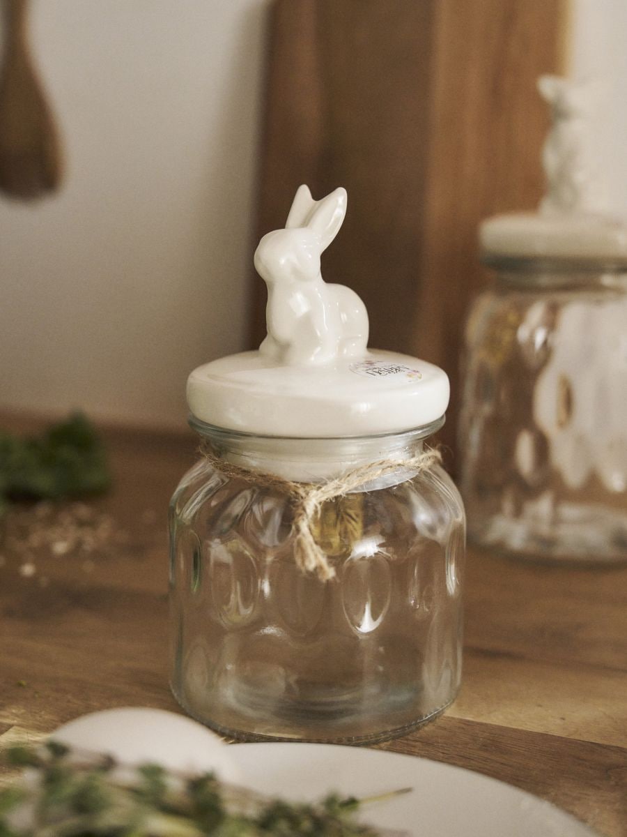 Банка з декоративною кришкою із великоднім зайчиком