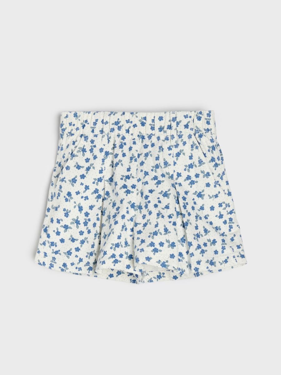 Бавовняні шорти з плісуванням спереду і квітковим принтом