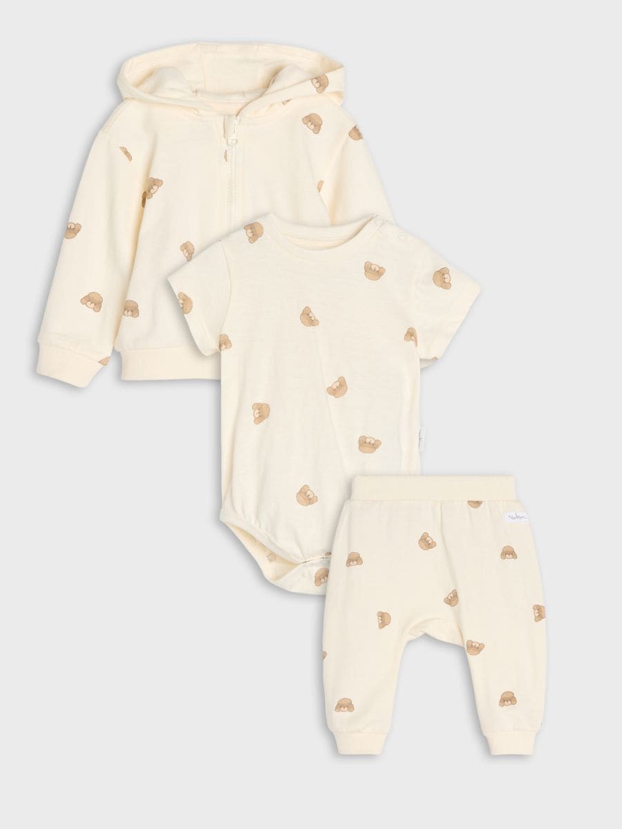 Бавовняний комплект: кофта, боді та штани