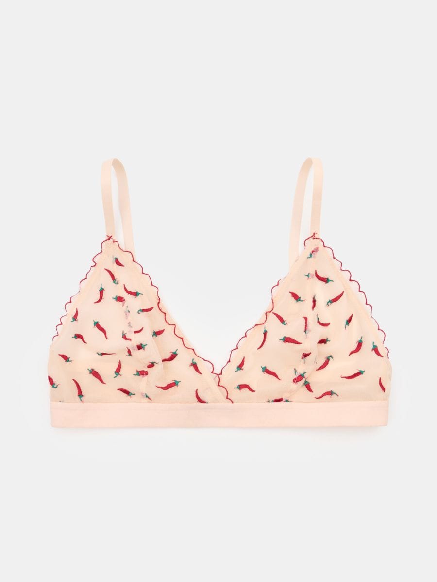 Бюстгальтер з вишивкою перців чилі на ніжній сітці з мереживним оздобленням