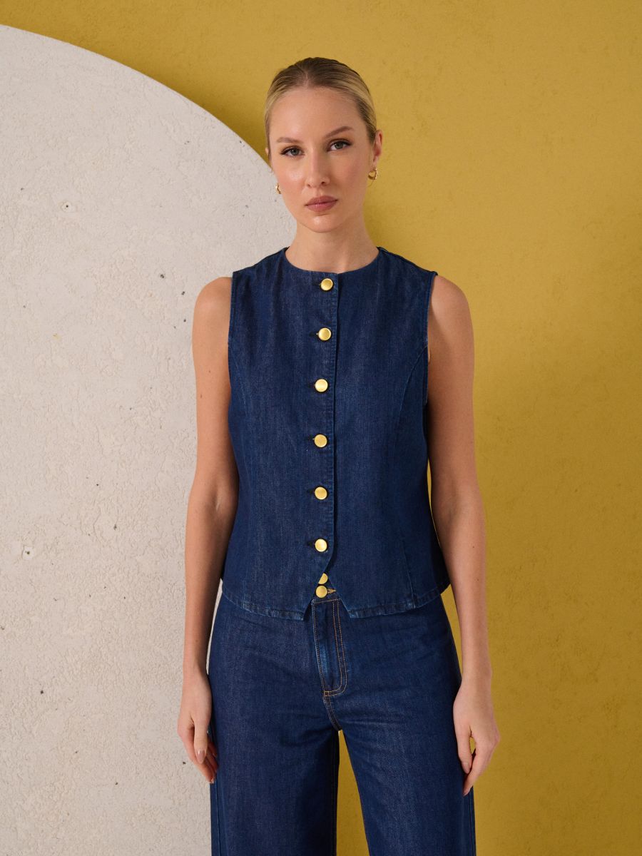 Джинсова жилетка з ліоцелу з домішкою бавовни
