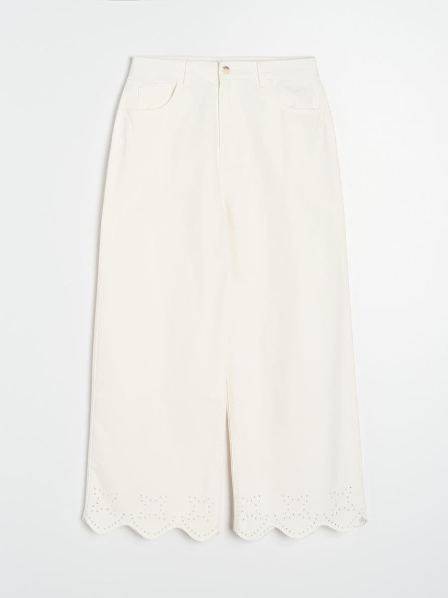 Джинси wide leg із середньою посадкою та ажурним оздобленням штанини