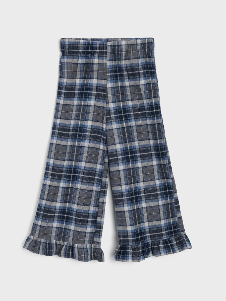 Фланелеві штани wide leg з воланом у клітинку