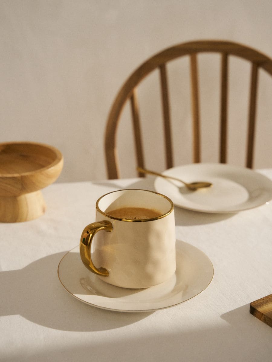 Керамічна чашка із золотою облямівкою та ручкою