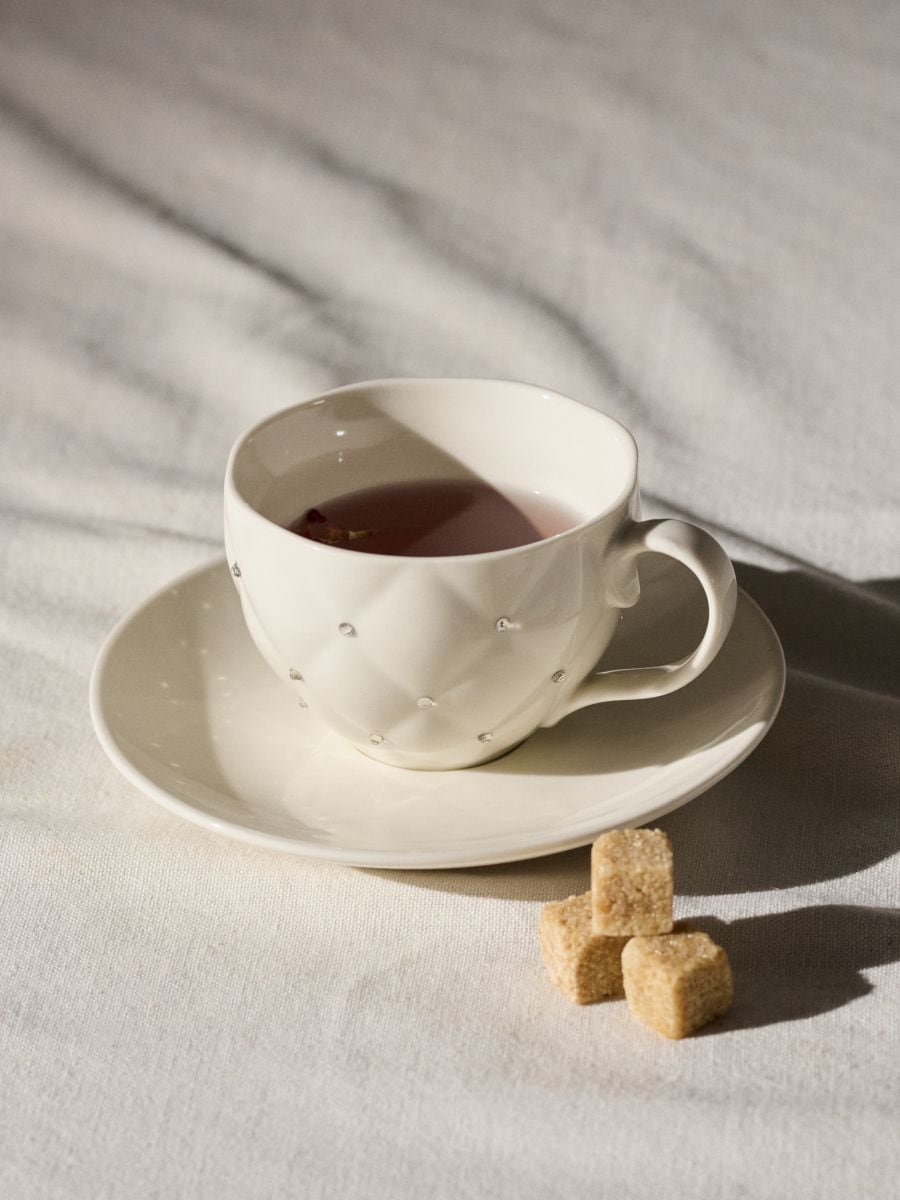Керамічна чашка з блюдцем з декоративними кристалами