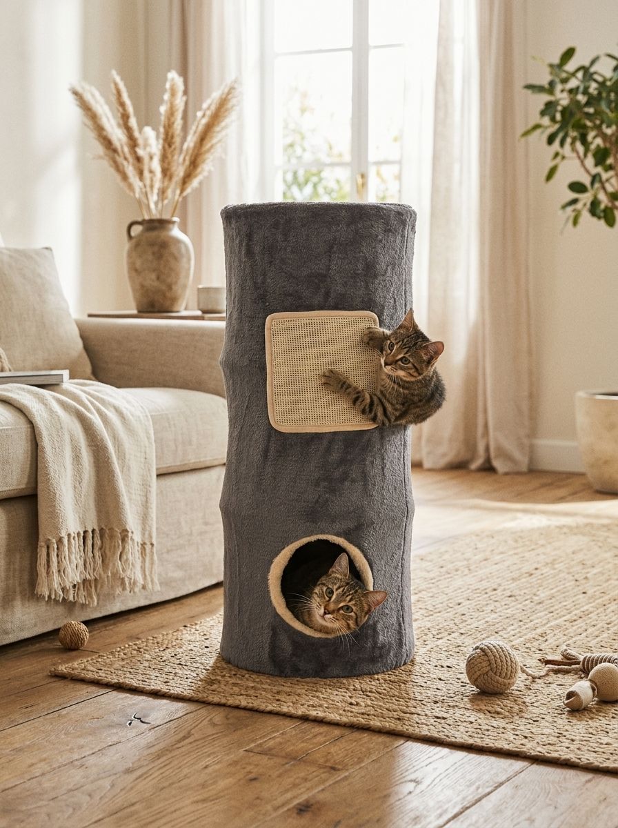 Кігтеточка для кота у вигляді плюшевої труби з входами