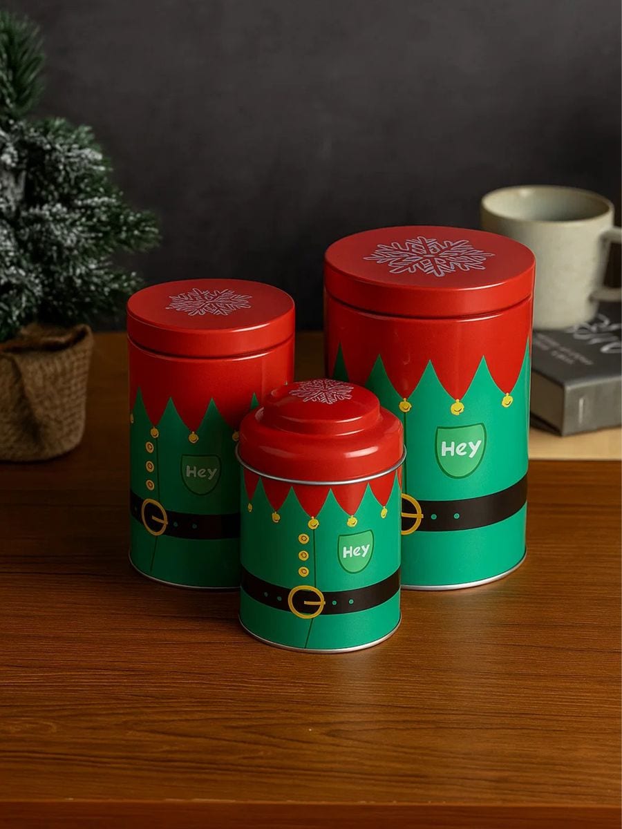 Металеві контейнери для їжі з різдвяним мотивом, упаковка з 3 штук
