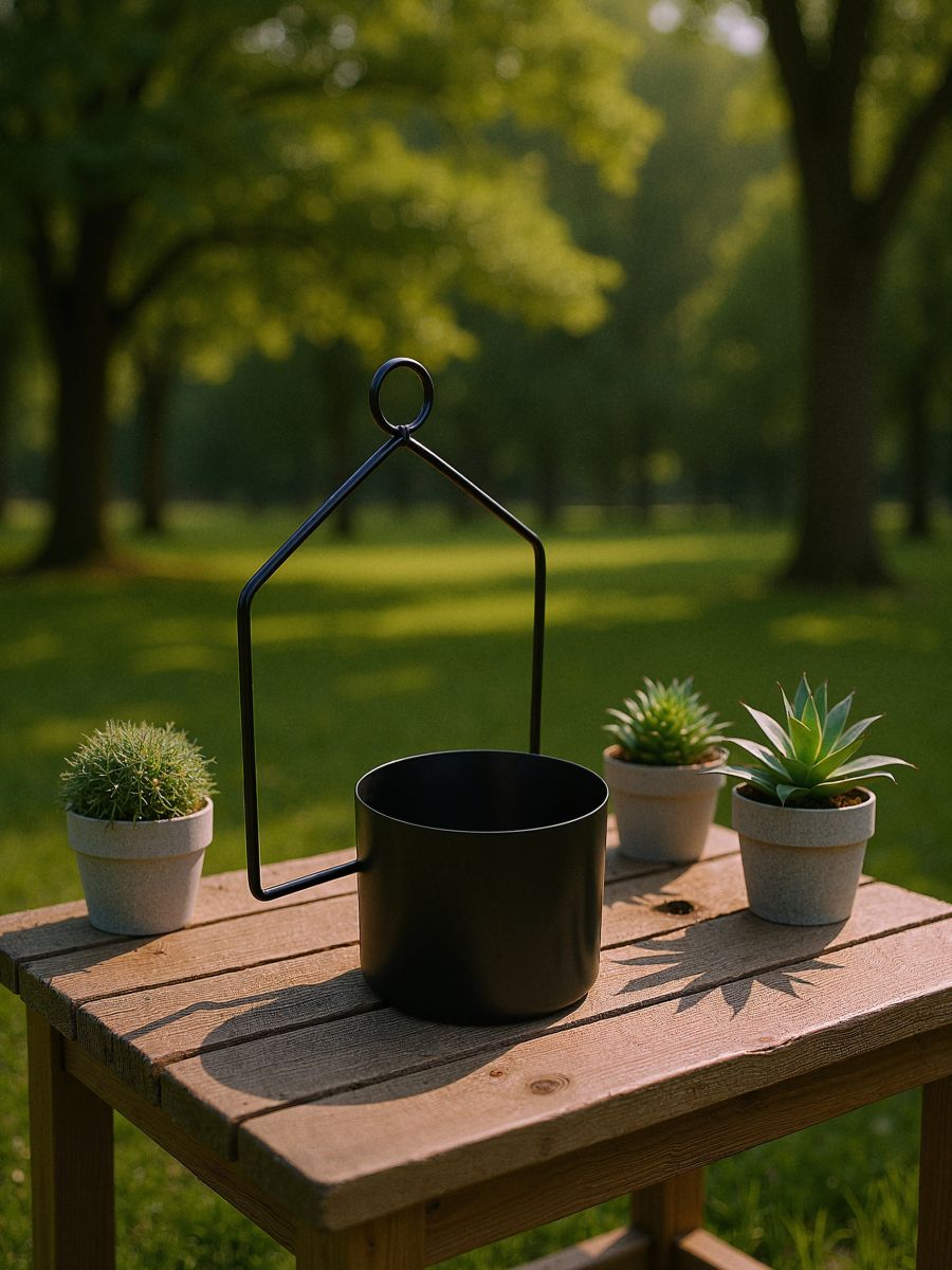 Металевий горщик у рамці у формі будиночка