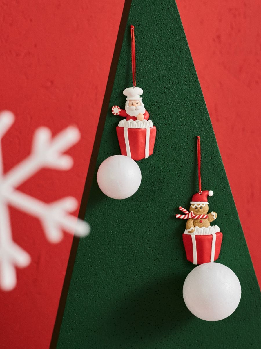 Набір різдвяних підвісних прикрас із Сантою та пряниковим чоловічком, 2 шт.