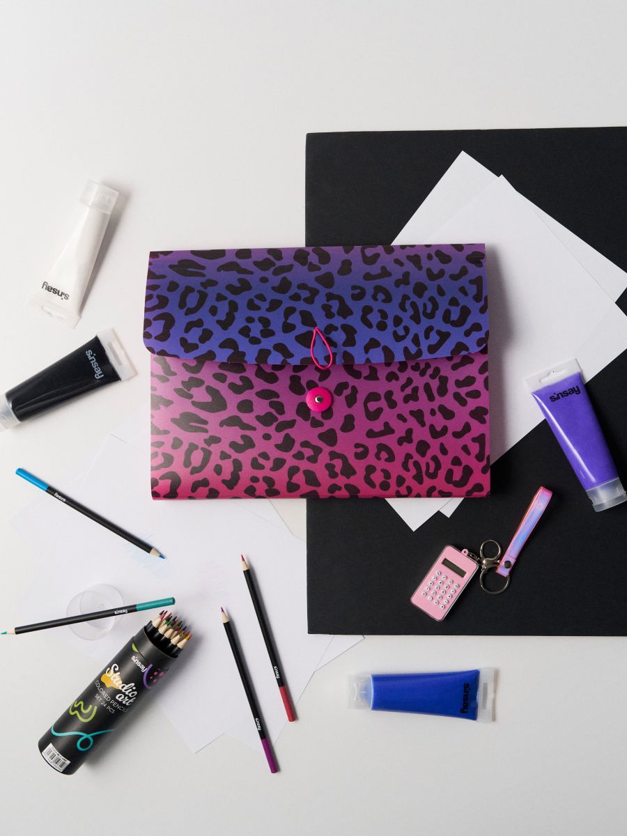 Органайзер для документів з перегородками і принтом по всій поверхні в леопардовий візерунок