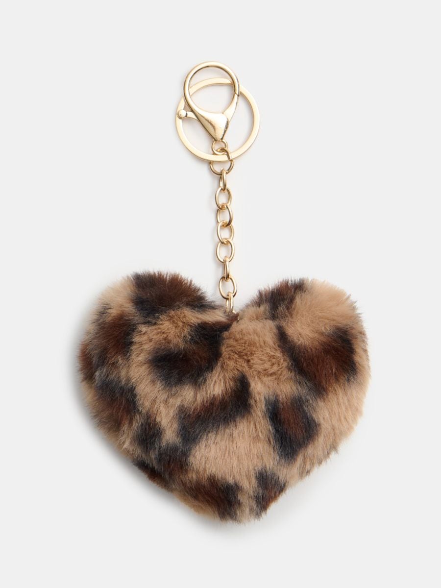 Пухнастий брелок у формі серця з леопардовим принтом