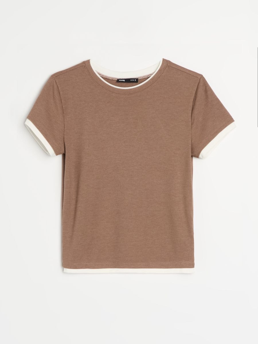 Ребриста basic футболка з контрастною окантовкою та домішкою віскози