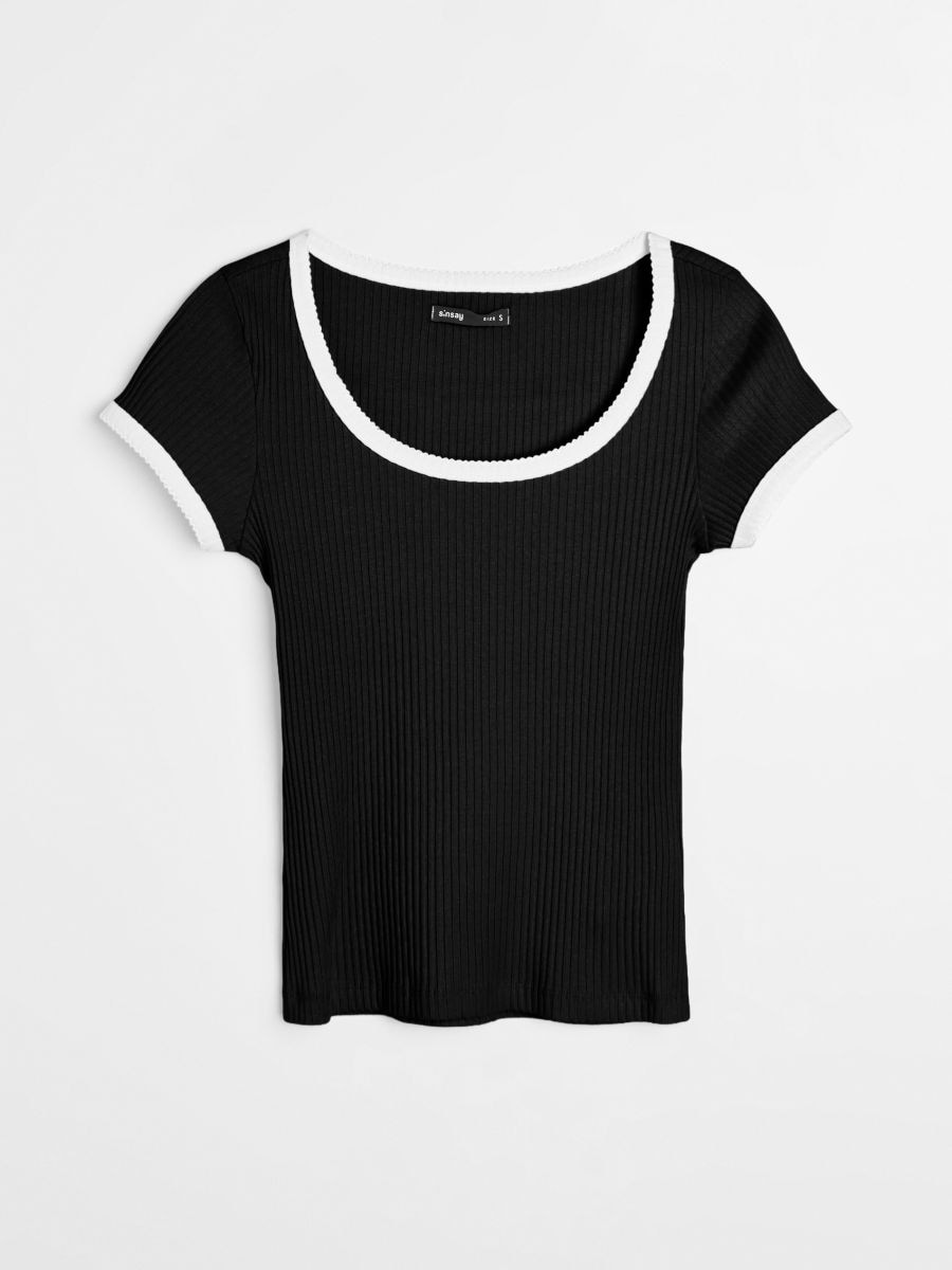 Ребриста футболка з контрастною окантовкою