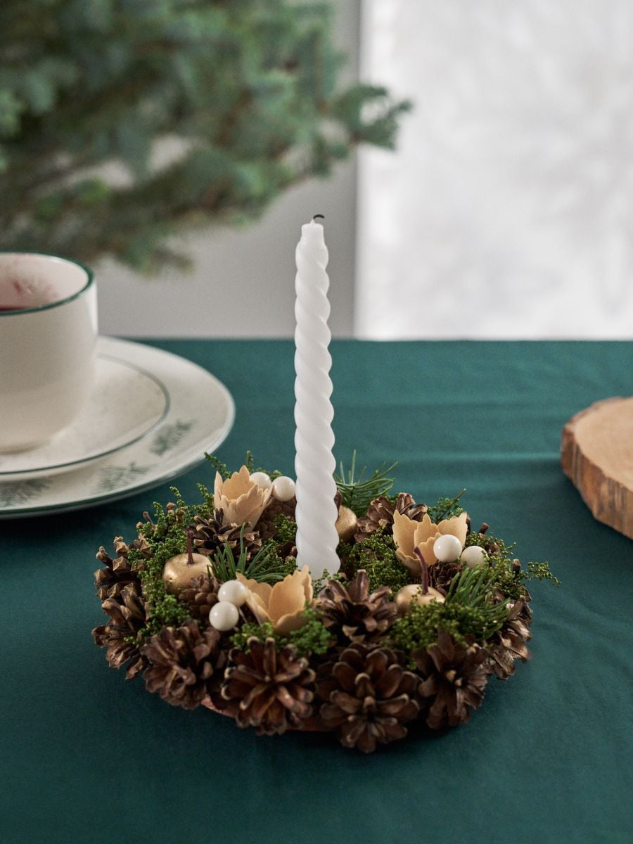 Різдвяний декоративний вінок із шишок і зелених гілочок
