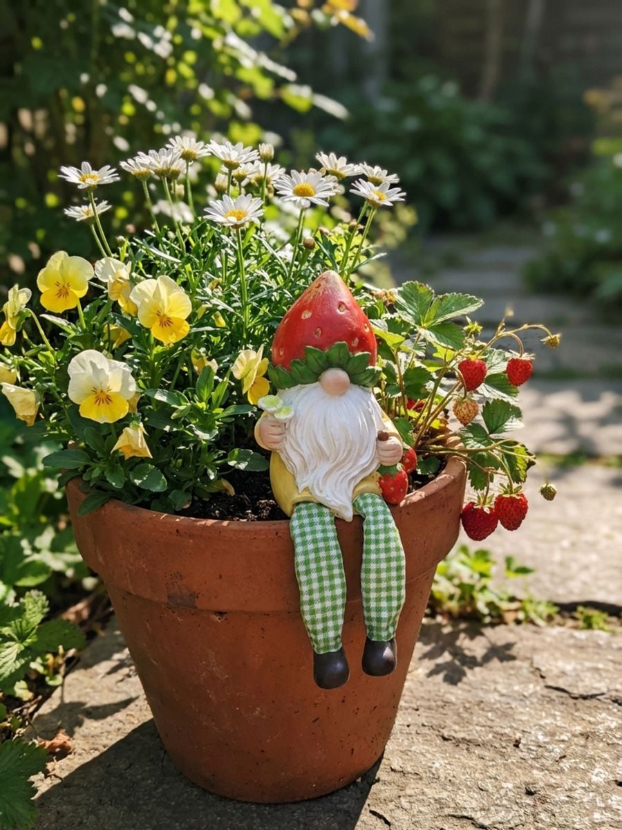 Садова декорація у формі гнома з полуничним мотивом