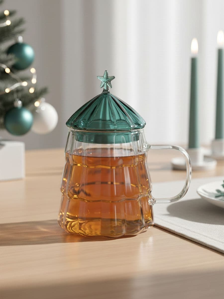 Скляна чашка з різдвяним мотивом