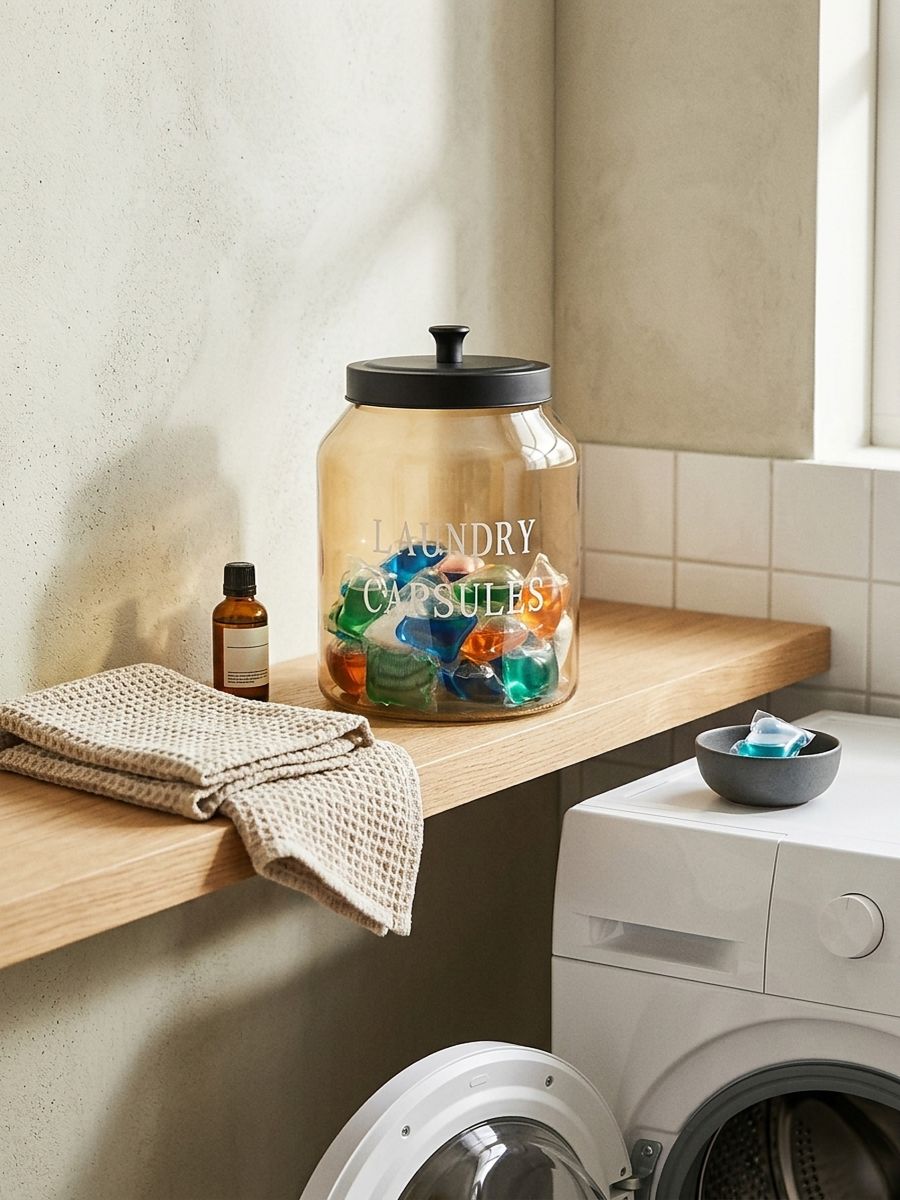 Скляна ємність із кришкою для пральних таблеток
