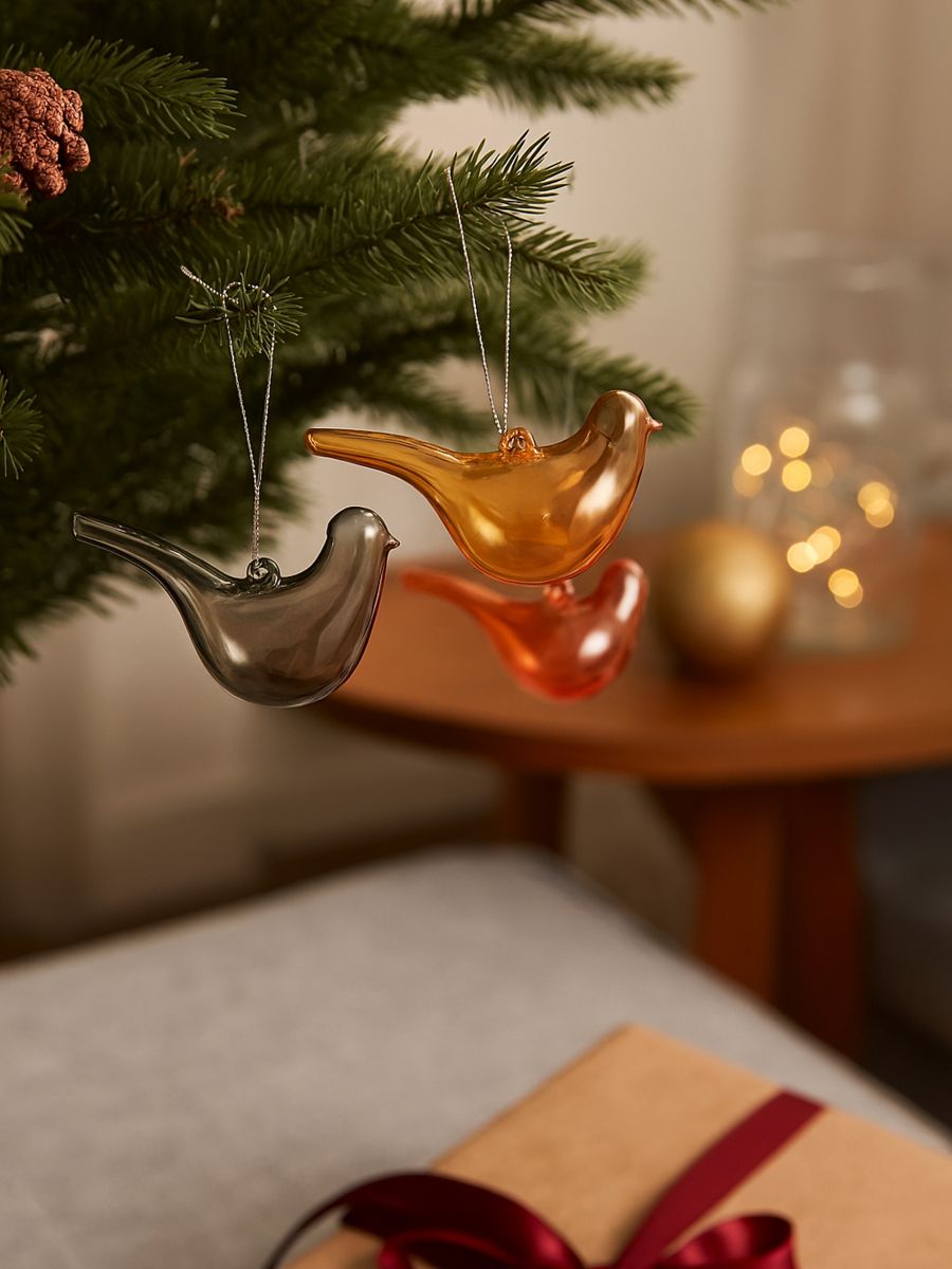 Скляні різдвяні прикраси у формі пташок 3 pack