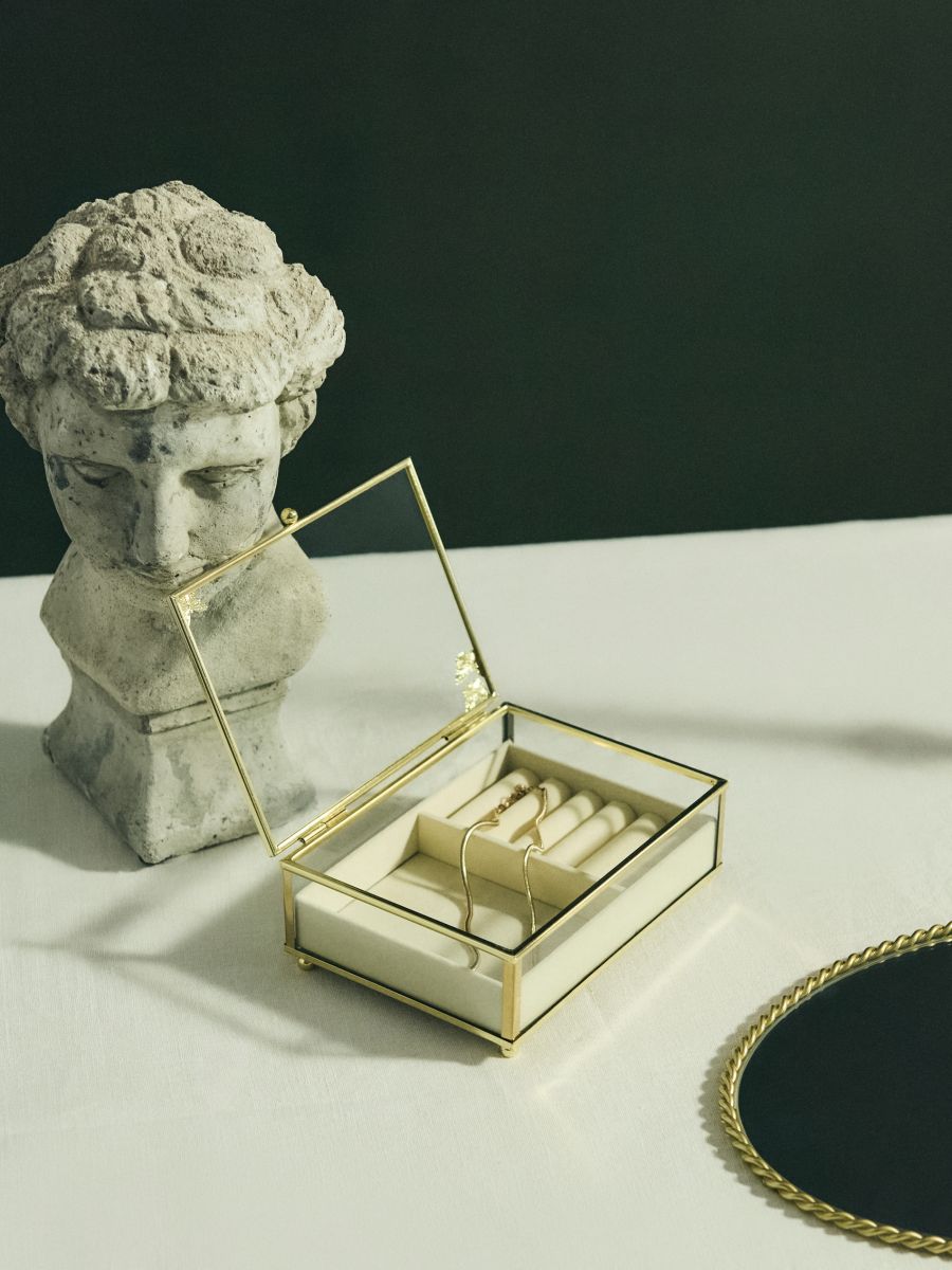 Скляний органайзер для прикрас із золотими деталями