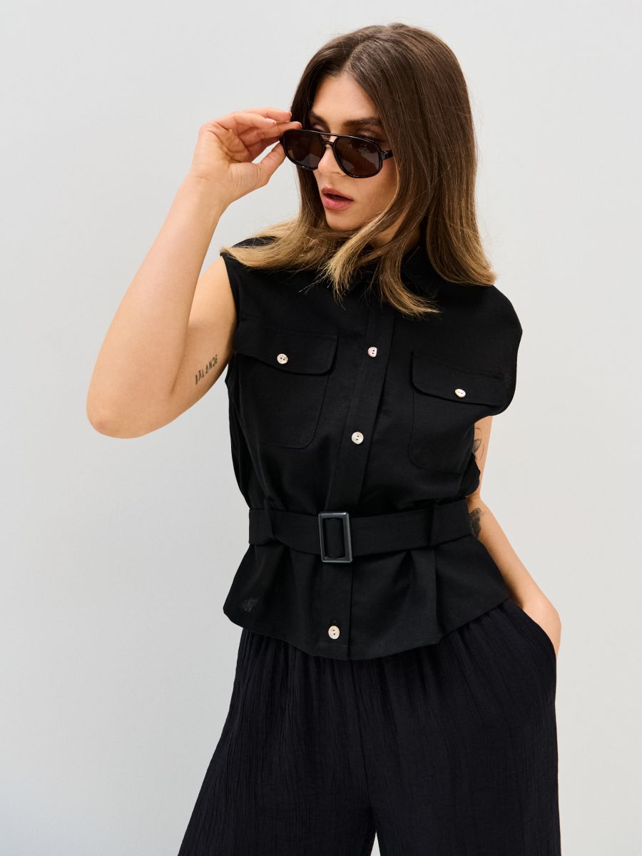 Сорочка без рукавів з віскозою та домішкою льону
